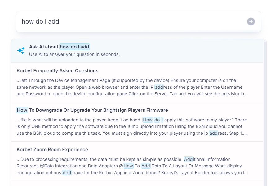 The improved search engine in the new Product Portal will find relevant articles based on the context of your search and compare them to the full content of all the support articles.