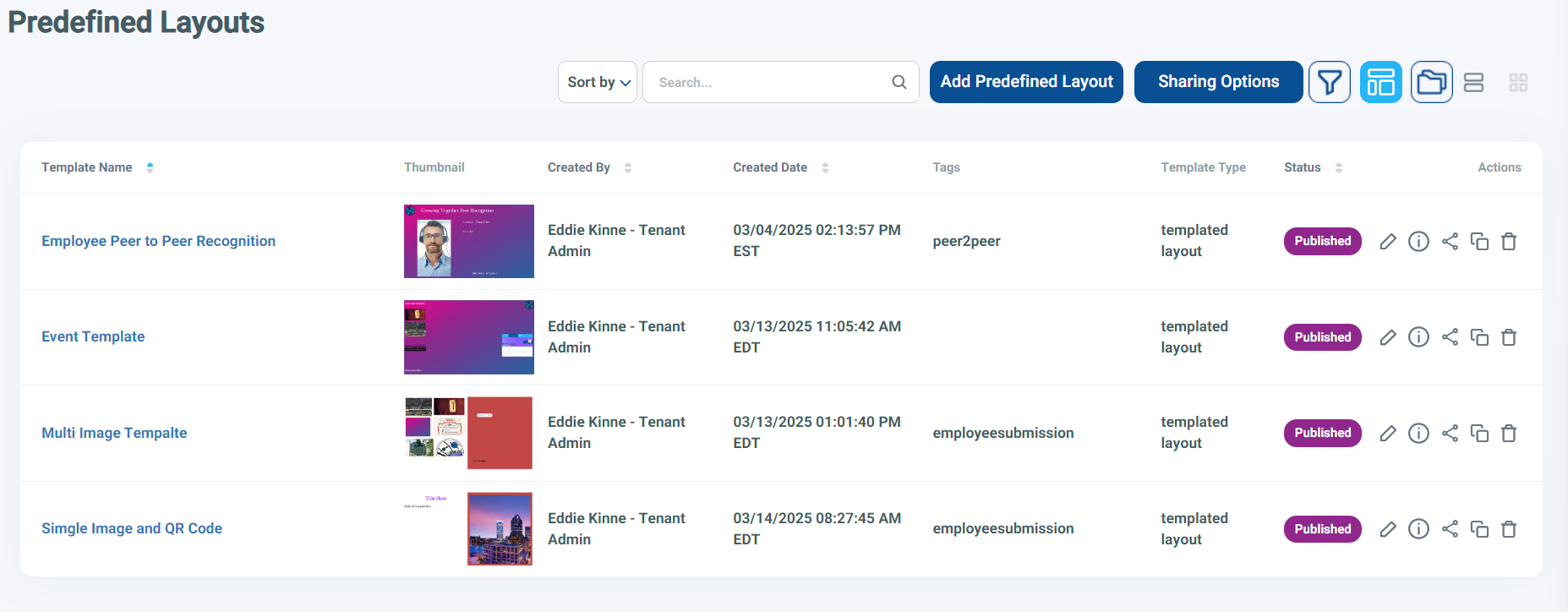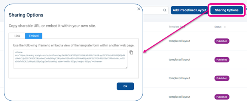 You can also share all the templates in 1 link by clicking the Sharing Options button in the upper right of the Predefined Layout screen