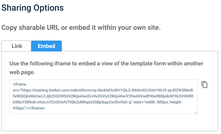 iframe HTML code that you can add to your internal sites