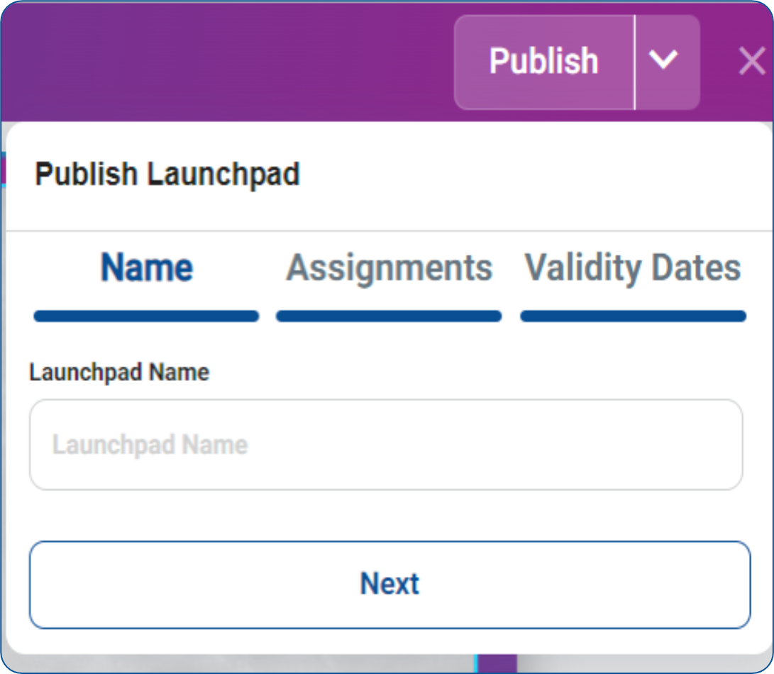 • The Launchpad screen gives users the ability to select available templates to fill in and publish