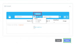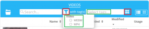 By clicking on the Video option, the type of video can be selected: WEBM or MP4. User will also have the option to select Tags.