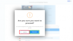 When selecting the players, a warning will appear (All content assigned to this player will be removed once it is Synced). Click on Proceed button for the next step or click Cancel to cancel the transaction.