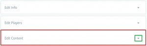Below we will show more details about the edit option. To edit click on the Edit button. The used should be able to Edit Info, Edit Players or Edit Content.