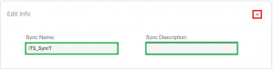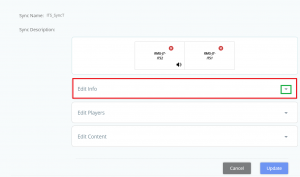 The window will expand allowing the user to make modifications to the Sync Player info like the Sync Name or Sync Description. Clicking on the up arrow will collapse the window.