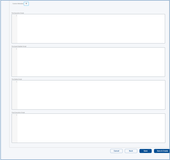 Adding any required, Pre-Execution Script, Pre-Insert/Update Script, Pre-Delete Script, Post-Execution Script