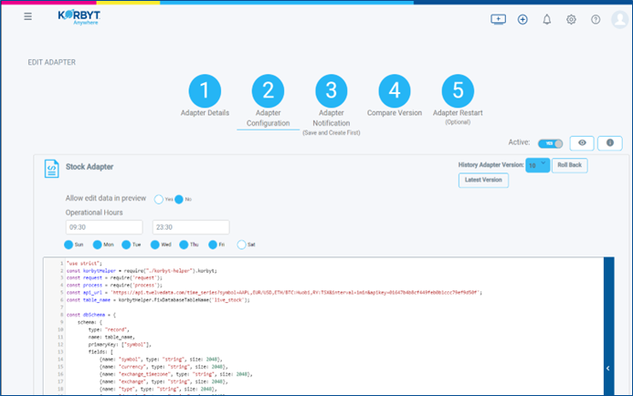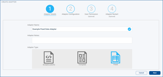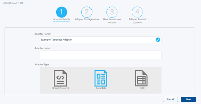 On the next Screen, Adapter Configuration, you will be able to start configuring and writing your Custom Adapter