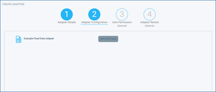 The next screen Adapter Configuration, will start being mostly blank with only the Define DB Table button