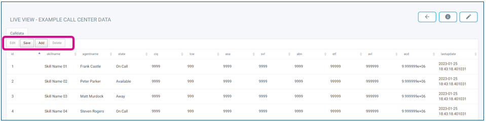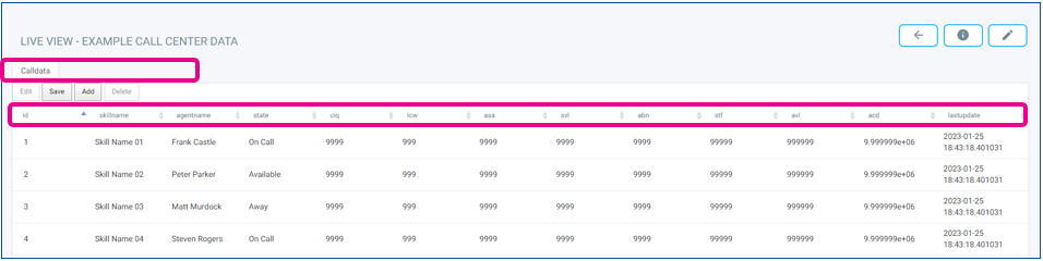 After clicking on the Eyeball icon for Live Data View you will be able to see the Data Table
